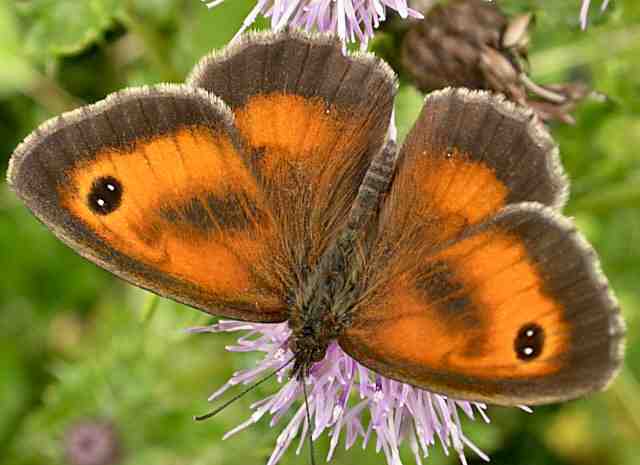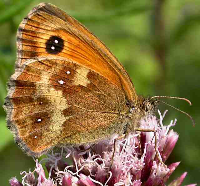 the gatekeeper readily flits from one flower to another. HABITAT: Hedgerows, country lanes and woodland edges and rides. FLIGHT PERIOD: July - September. |