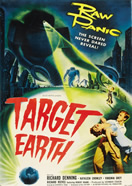 TARGET EARTH 1954. Directed by Sherman A. Rose The invaders are coming, there is panic in the streets, all we have to rely on are some time-served residents of the 'populace in trouble' role and a script that has many flaws and corned explanations. Richard Denning is in the driving seat, a man who was either short of work or utterly immersed in these escapades. We know the route to be taken, but will anything outrageously surprising be encountered along the way? Frank Brooks (Richard Denning) and Nora King (Kathleen Crowley) join forces after bumping into one another in a seemingly deserted town. They meet another couple in a bar Vicki Harris (Virginia Grey) and Jim Wilson (Richard Reeves), a couple who have been celebrating hard and are almost oblivious to the desolation. The small group find out the reason for the abandonment of the city, it is an attack of robots which Brooks considers to have come from Planet Venus. Whilst looking for a car to escape the city they meet Charles Otis (Mort Marshall) who has also been looking to flee the city but found all cars out of use. The group take shelter, Otis reads a newspaper that tells of the attack, he panics, runs into the street and is duly shot by a robot. To add to the groups problems, they are joined soon after by a psychotic killer known as Davis (Robert Roark), who has his own plans for survival. The culmination of events soon comes, not all survive and we wonder if we will be left in suspense or given a clean cut finale - ooh the cliff-hanging thrill of it all. Despite only using one robot throughout the film and making sure that a very tight budget was adhered to this isn't a bad jaunt. It goes through the usual rigmarole, it gets the scientists befuddled and then using a somewhat surprise method they find themselves with a chance of saving the plant. It seems there is always hope, even when money is tight and robots are on the loose. |