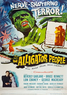 THE ALLIGATOR PEOPLE 1959. Directed by Roy Del Ruth Swampy hokum with a scientific experiment gone wrong, a drunken outcast causing mayhem and a man in a rubber suit desperately seeking a cure for his scaly problem. It is a film that displays nothing new and is a mere curiosity for those with twitching terror conks. Nurse Jane Marvin (Beverly Garland) is on the psychiatrist's couch and, after being sent into a regressive stupor, recalls recent events where she went under the name of Joyce Webster. Joyce was a newly wed, on board a honeymoon train with her husband Paul. Paul receives a note and after going into a panic he duly leaves his wife behind and disappears. Joyce conducts a search for her husband and eventually comes to the town of Bayou in Louisiana’s swamplands. Here she is picked up by local odd-job man and weirdo Manion (Lon Chaney Jr). Joyce arrives at her destination, The Cyresses Plantation, a place where the one-handed Manion is the handyman and a place her husband Paul entered on his old college enrolment forms. Here she comes across an austere mistress Lavinia Hawthorne (Frieda Inescort) and a Swamp Doctor, Mark Sinclair (George Macready), both of whom are hiding a terrible secret and whom know what has happened to the sought for spouse. The pace picks up, the theatrics are stagy and the acting stiff at times with the finale wrapping up a half-decent jaunt. A fair snippet of comic-book horror here, the title will be enough to attract many of a certain ilk. In the midst of many nonsensical offerings such as this I reckon this is worthy of several repeats viewings but don’t expect to have your socks blown off. |