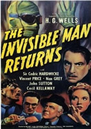 THE INVISIBLE MAN RETURNS 1940. Directed by Joe May 7 years on from the original and although the film title states a return of the 'Invisible One', here we see a new lead scientist indulge in some disappearing shenanigans and eventually end up insane. There is a lot to live up to here but with a certain famed horror actor at the helm, the promise may just well be fulfilled. Dr Fank Griffin (John Sutton) brother of the original invisible man, injects suspected murderer Sir Geoffery Radcliffe (Vincent Price) with an invisibility drug. Radcliffe, accused of killing his brother, vanishes from his prison cell and goes in search for the real murderer with Detective Sampson (Cecil Kellaway) hot on his trail. Initial suspicions of the guilty party fall upon Willie Spears (Alan Napier), an employee of the Radcliffe Family mining operation. Spears, who has recently earned a promotion, is tracked down and after a car chase points the finger at Radcliffe's cousin, a Richard Cobb (Cedric Hardwicke). Another chase soon follows, a confession is revealed but in the action Radcliffe has been struck by a bullet fired by Sampson. The film ends with Radcliffe's life on a knife-edge - only the last seconds inform us if he will live or die. For a follow-up to an undeniable classic this is a more than adequate offering with a steady pace, some neat effects and one or two unique oddments thrown-in (I mean, how manner other films have invisible Guinea Pigs). Radcliffe's descent into madness is enthralling, the murder mystery plot well held together thus making for a very rewatchable film. |